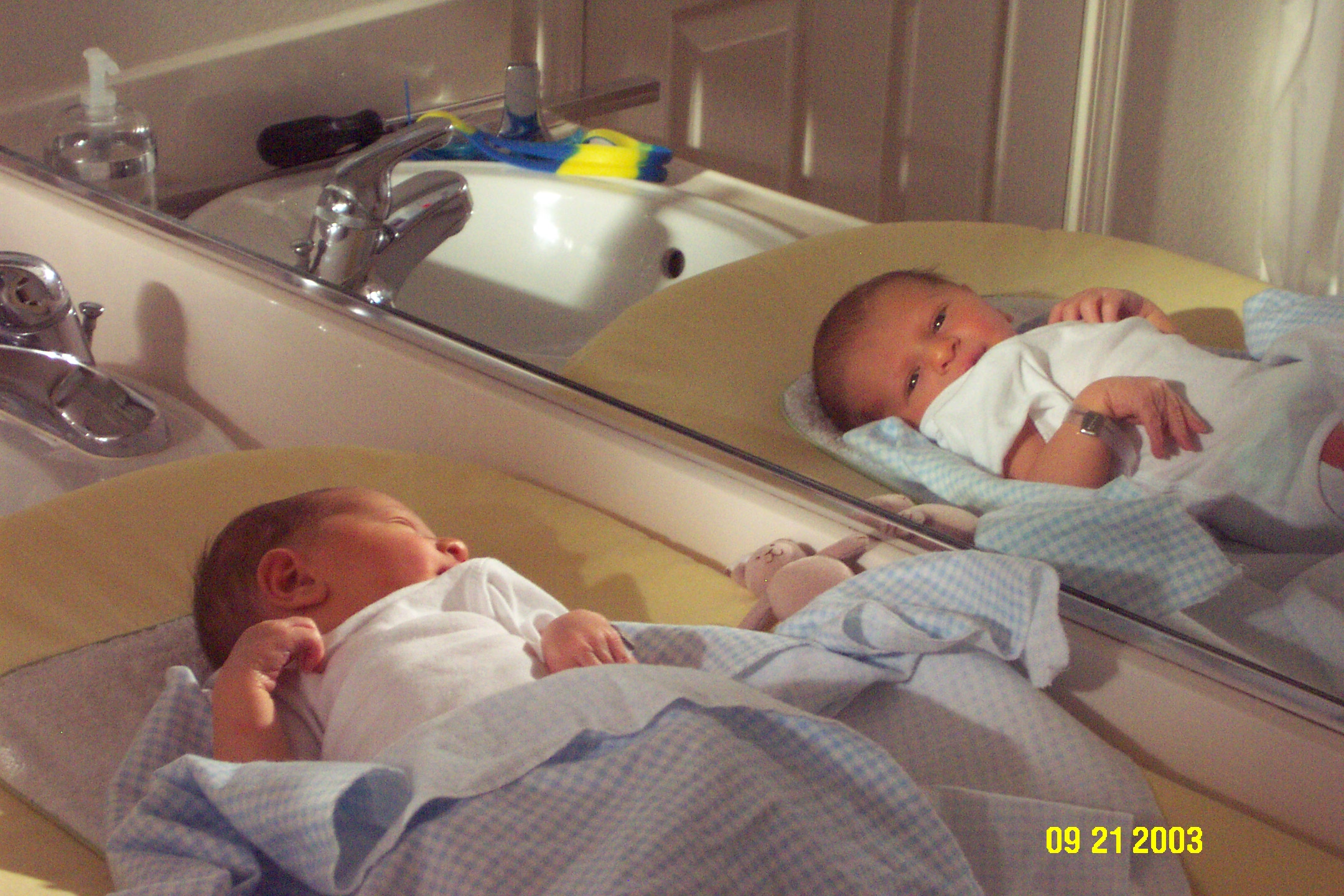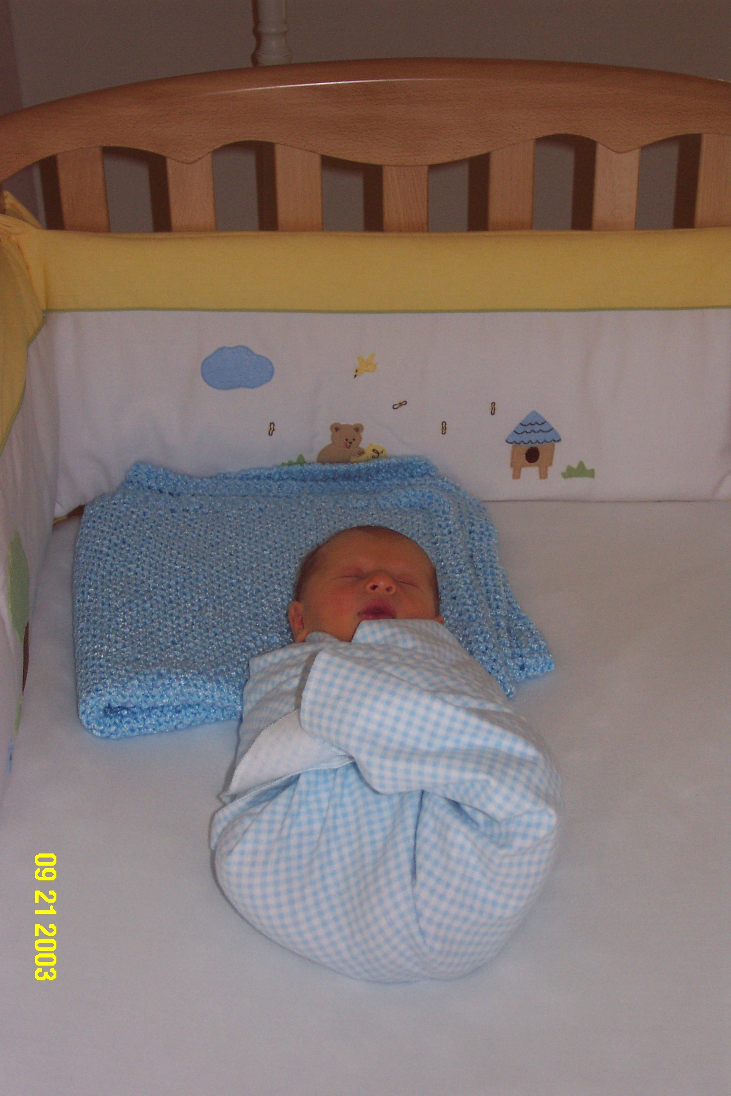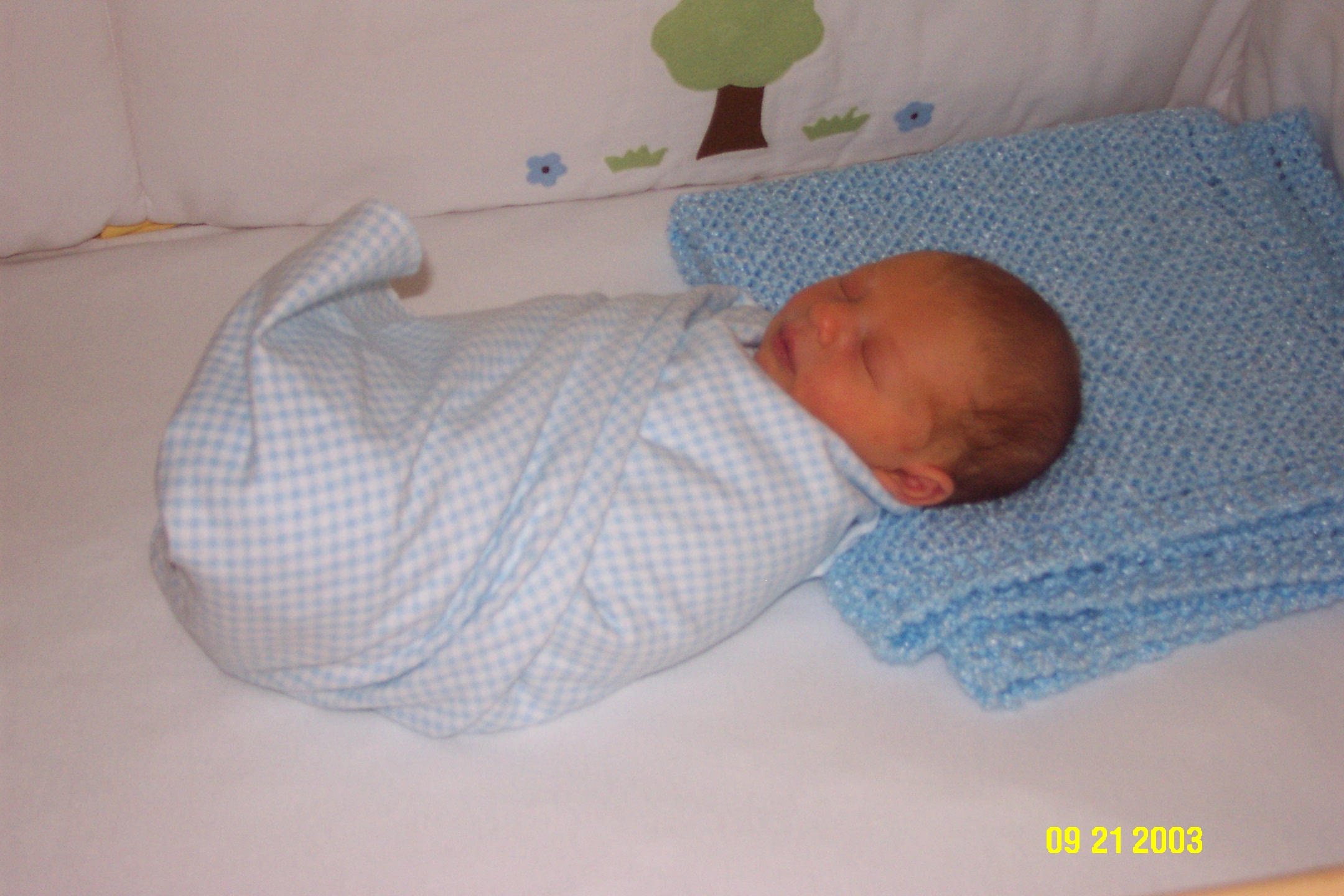 The "Burrito" in his crib