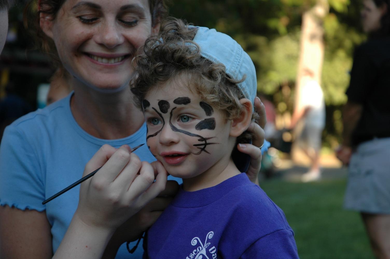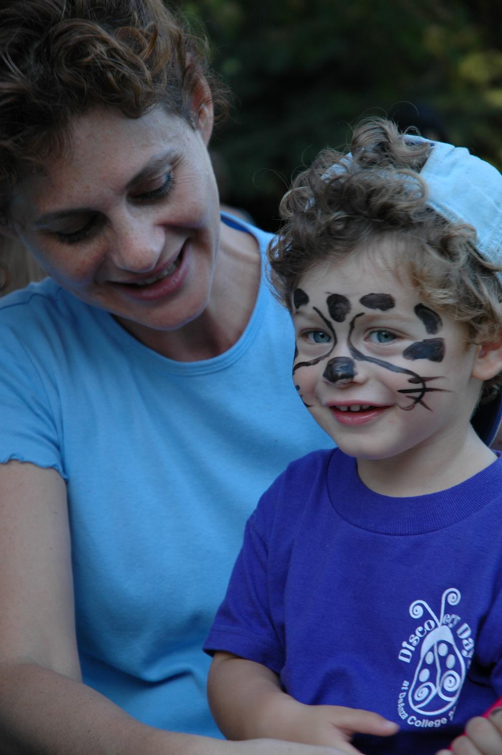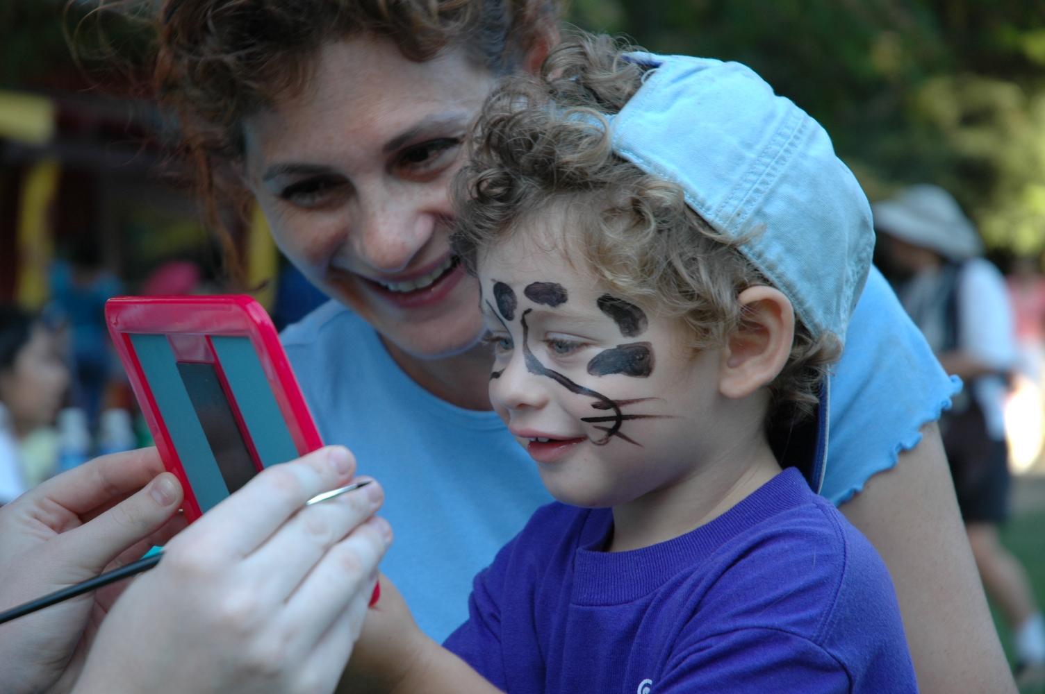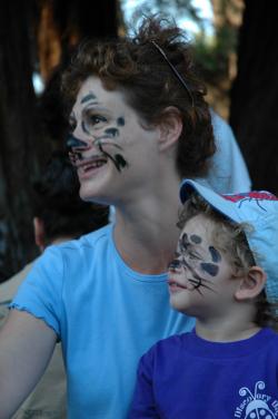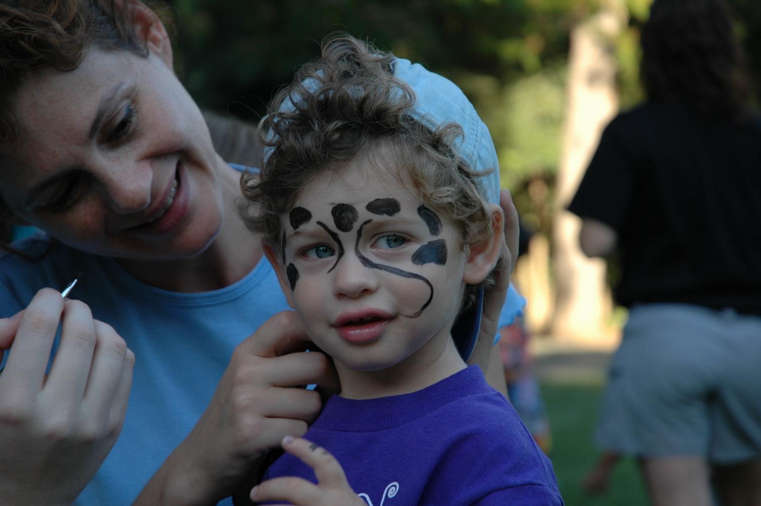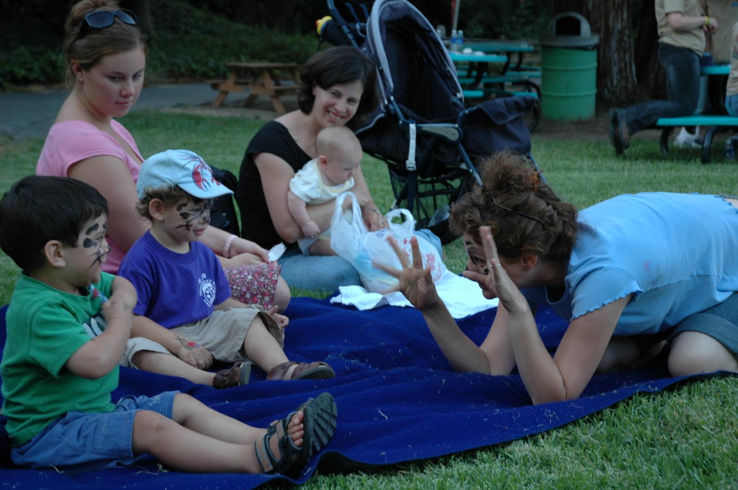 These pictures were taken at the 'party on the wild side' at Happy Hollow. Itai, mom and dad were meeting with Itai's friend Yoav and his little sister Maya along with their mom. The party was lots of fun: Itai was riding the carousel, sliding down the crooked house slide, and having picnic on the grass. And the most important of all - Itai, Yoav and Ma were all painted up like tigers. Rrrrrr, that's what tigers do!