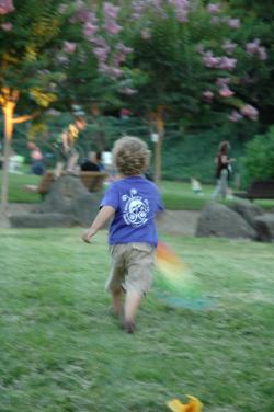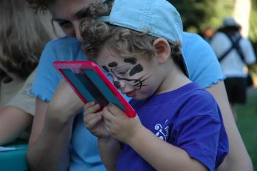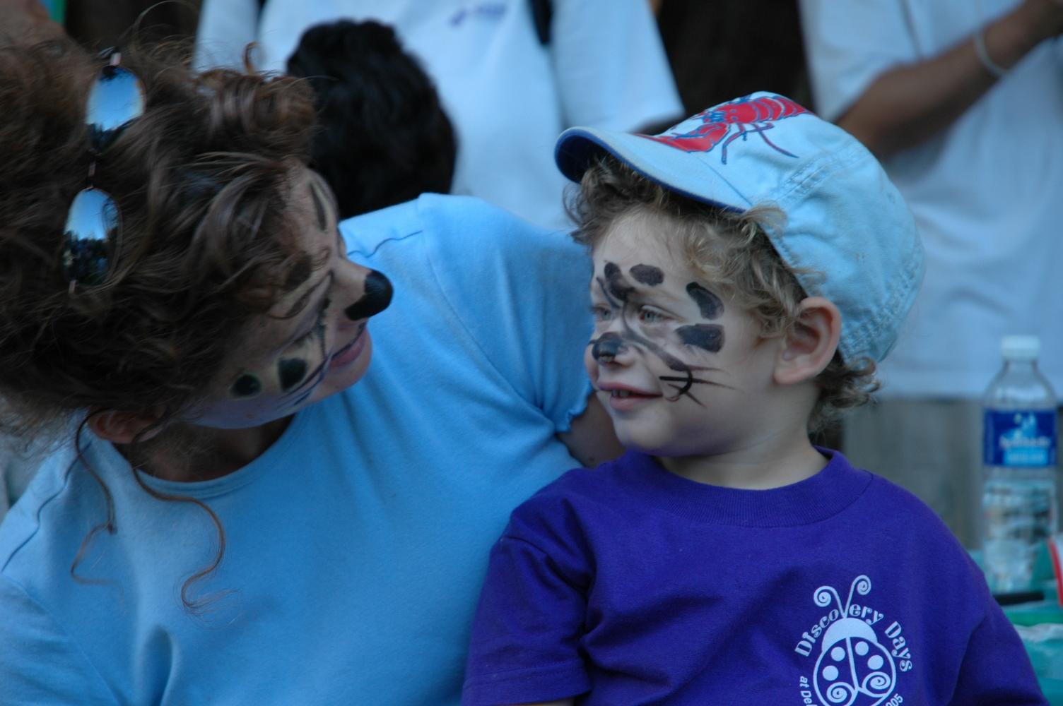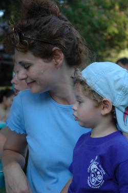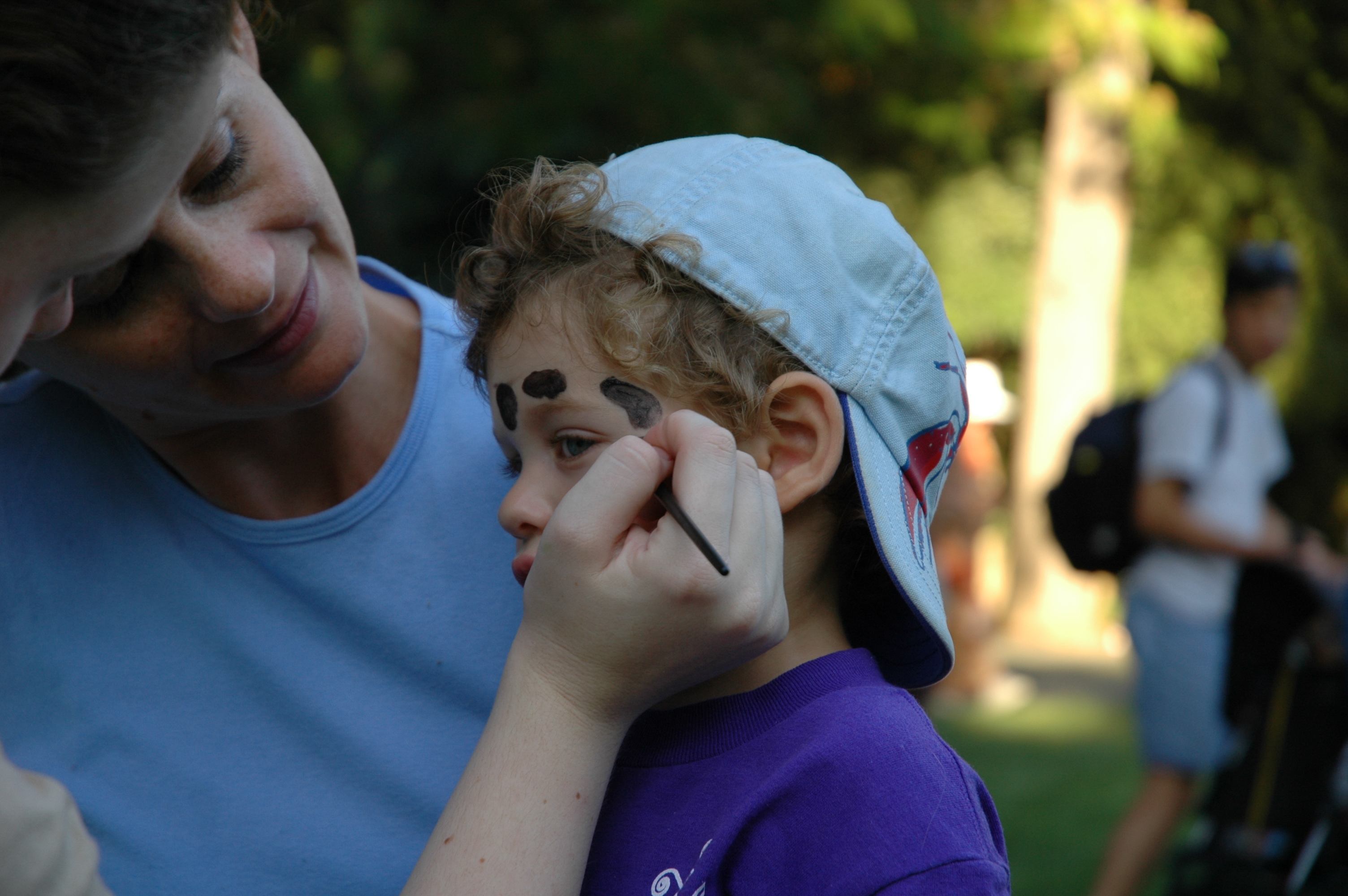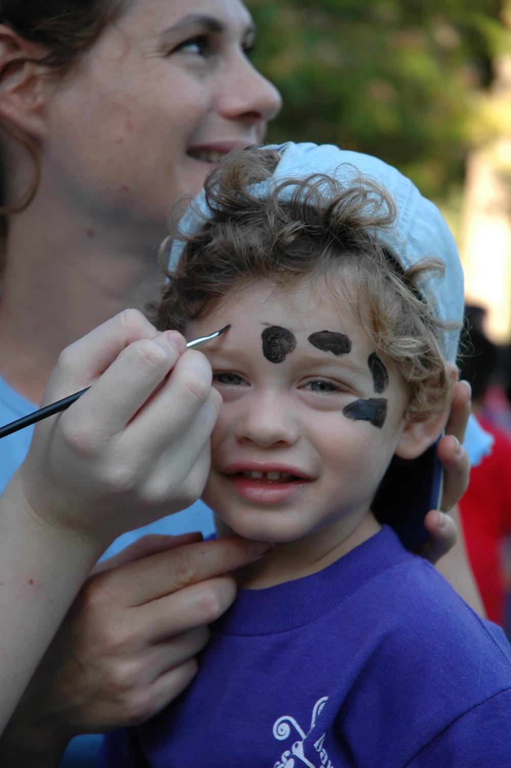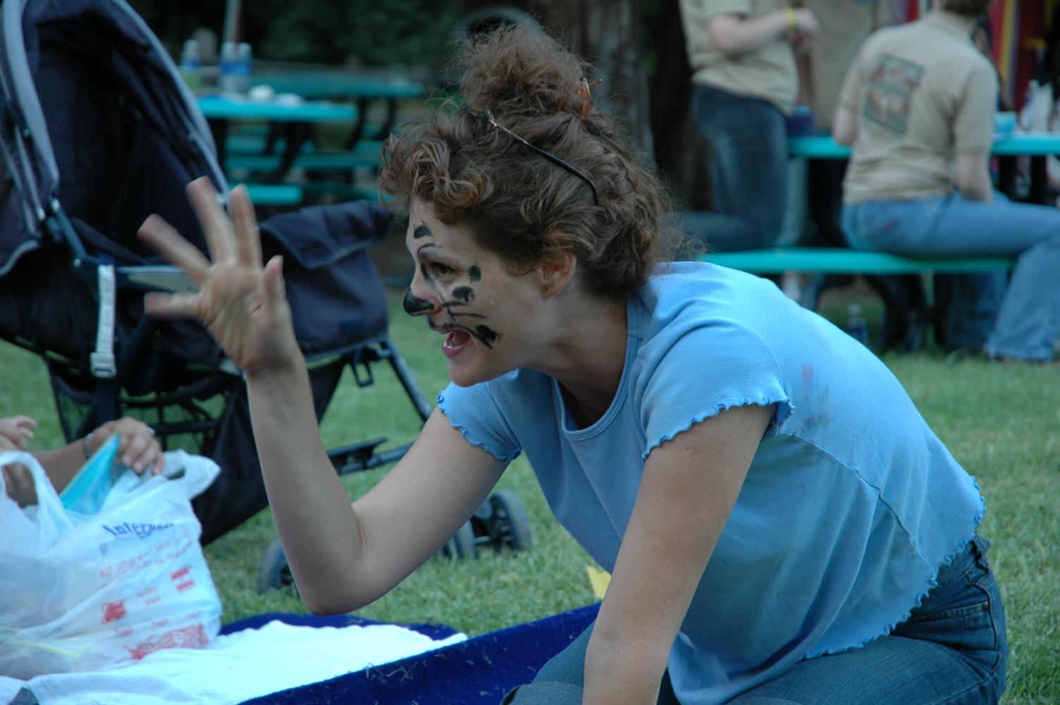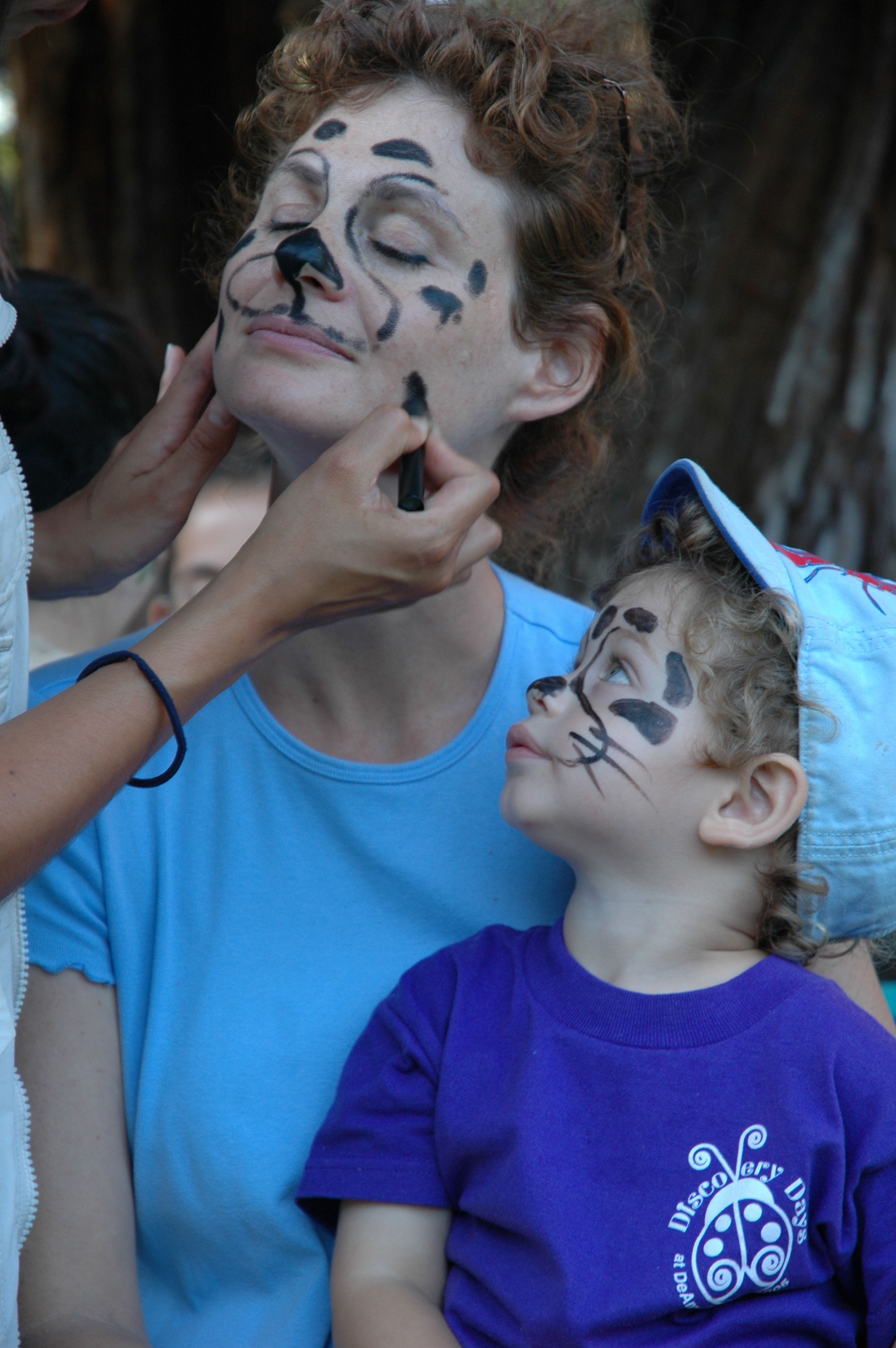 These pictures were taken at the 'party on the wild side' at Happy Hollow. Itai, mom and dad were meeting with Itai's friend Yoav and his little sister Maya along with their mom. The party was lots of fun: Itai was riding the carousel, sliding down the crooked house slide, and having picnic on the grass. And the most important of all - Itai, Yoav and Ma were all painted up like tigers. Rrrrrr, that's what tigers do!