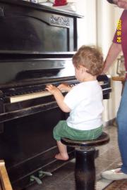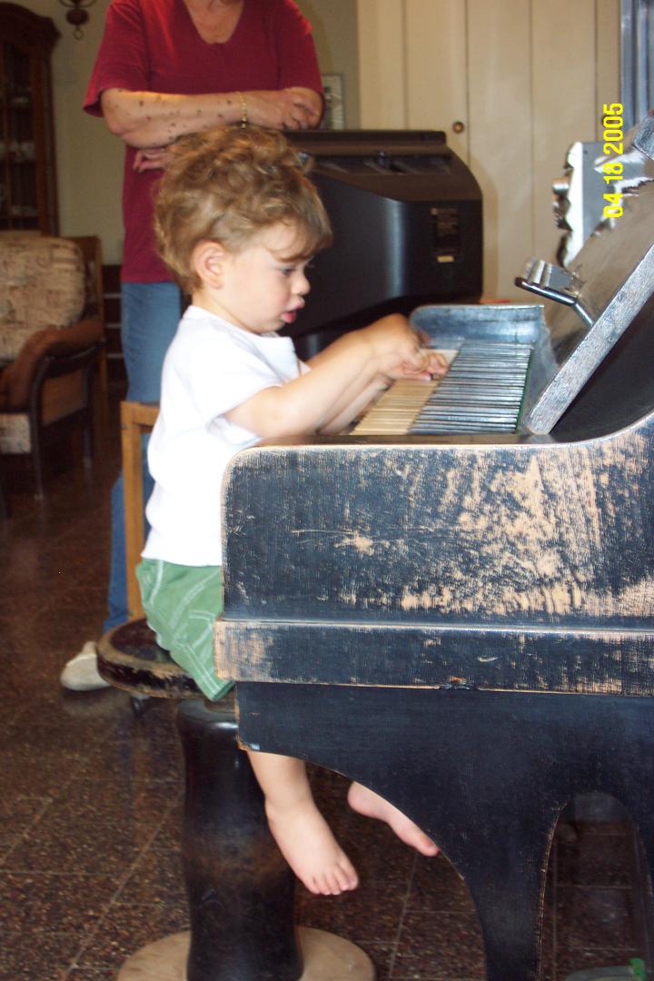 Playing the piano at Grandma Erela's house