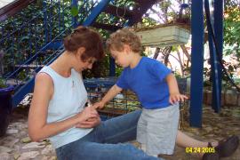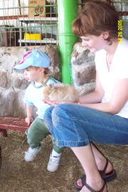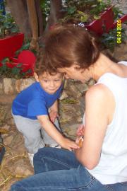 Petting guinea pigs at Villa Thilla