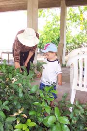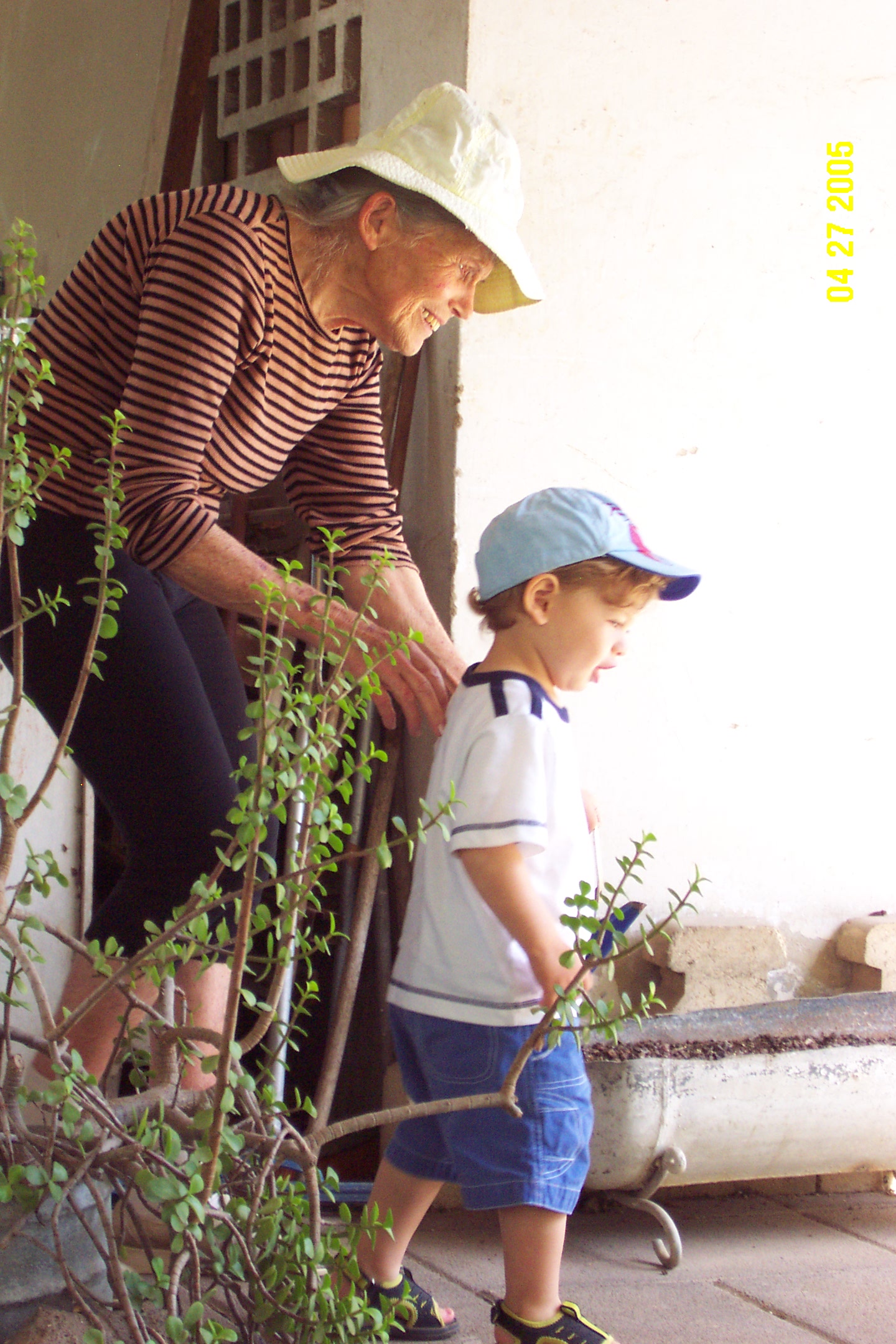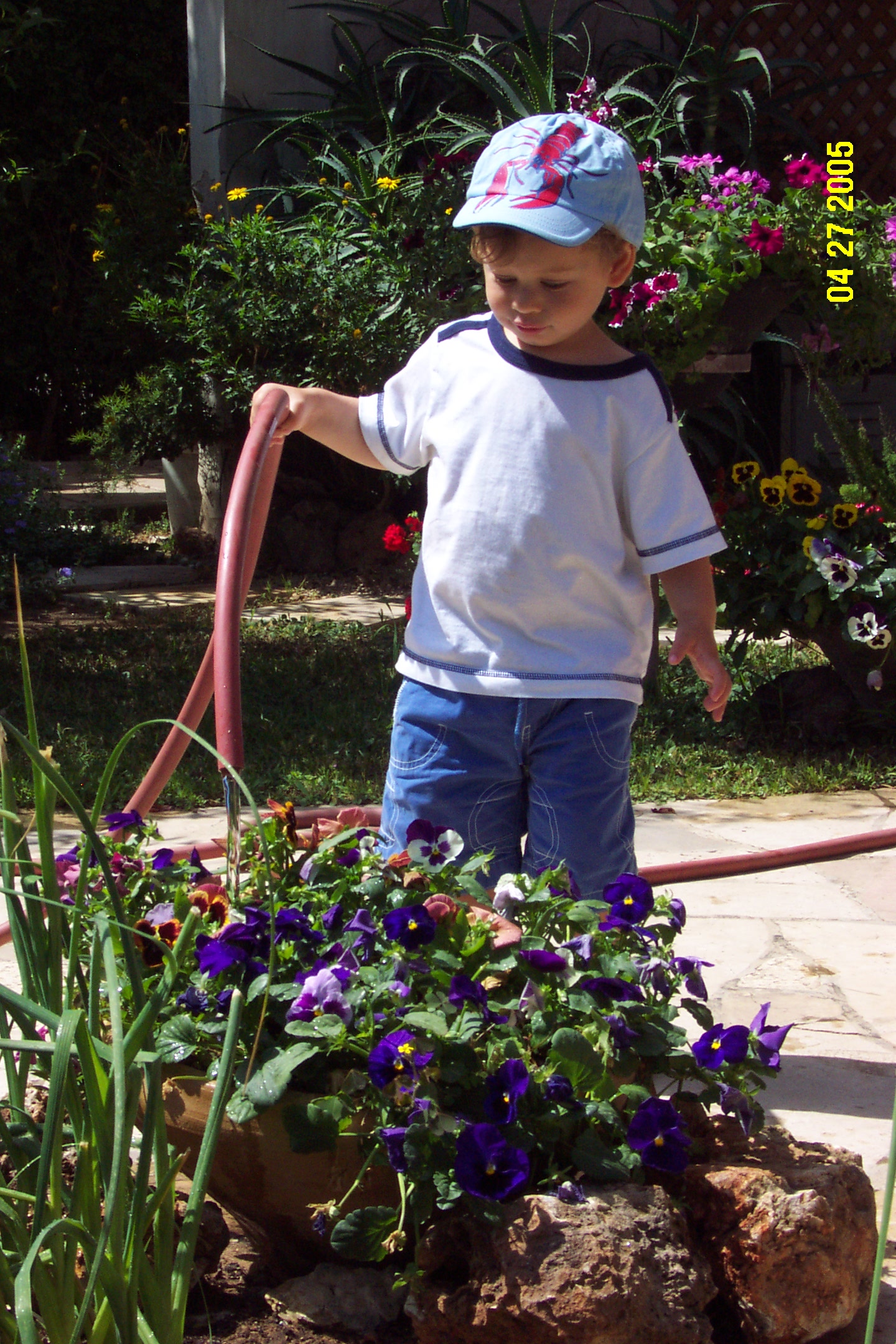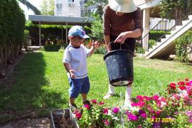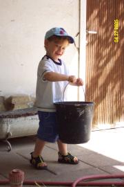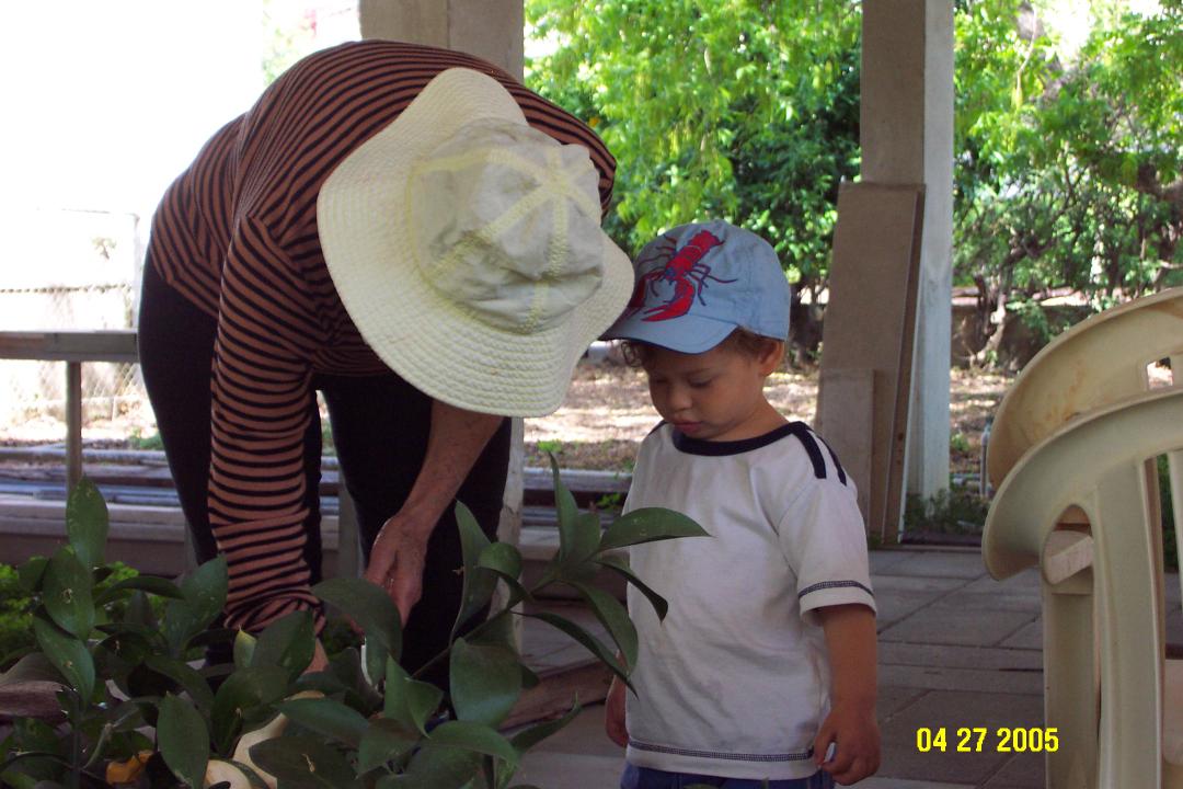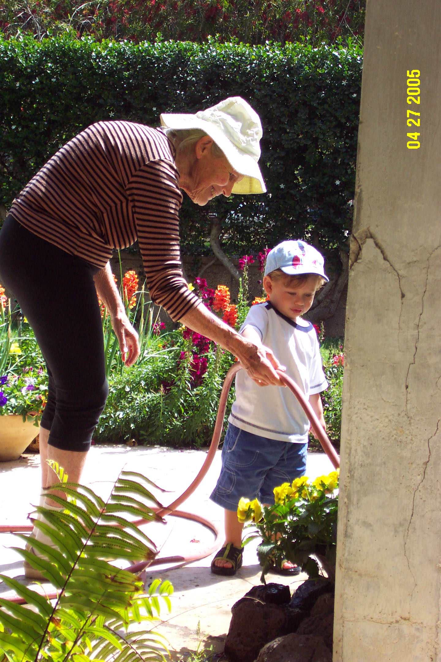 Helping Granny to water her garden. We really love that!
